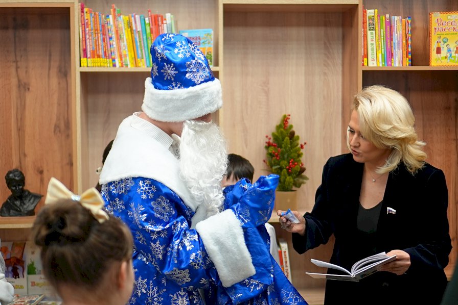 Неожиданными и самыми любимыми гостями праздника стали Дед Мороз и Снегурочка. Вместе с ребятами они читали стихи Агнии Барто, чье имя носит библиотека, создавая по-настоящему домашнюю, сказочную атмосферу.