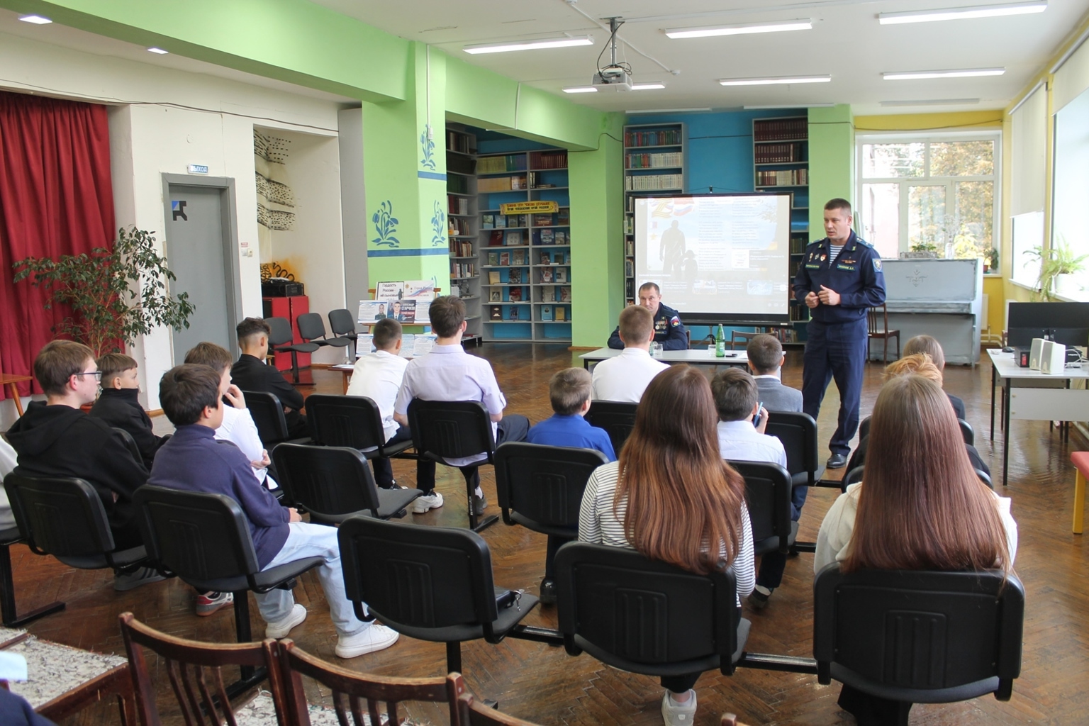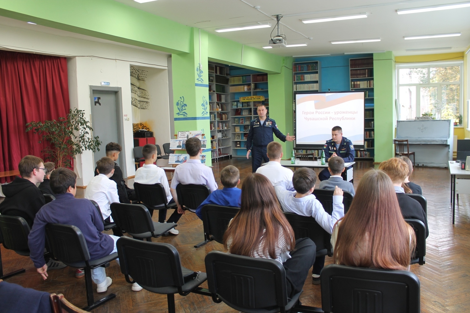 Сегодня в библиотеке им. М. Сеспеля состоялась встреча с участниками специальной военной операции гвардии майором, главным специалистом-экспертом военного комиссариата Чувашской Республики Осиповым Димитрием Сергеевичем и гвардии рядовым Егоровым Сергеем Петровичем. Мероприятие прошло в рамках патриотического часа «СВОи герои», в котором приняли участие дети подросткового центра «ТОП» (Территория общения подростков) Калининского района.