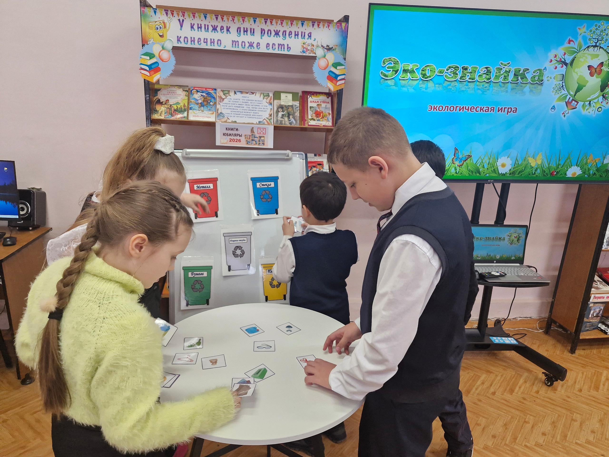 В рамках школы юного эколога «Муравейник» в библиотеке им. А.С. Пушкина для учащихся 2 класса школы №10 прошла экологическая игра «Экознайка». Библиотекарь побеседовала с ребятами о проблемах экологии и важности сохранения природы.