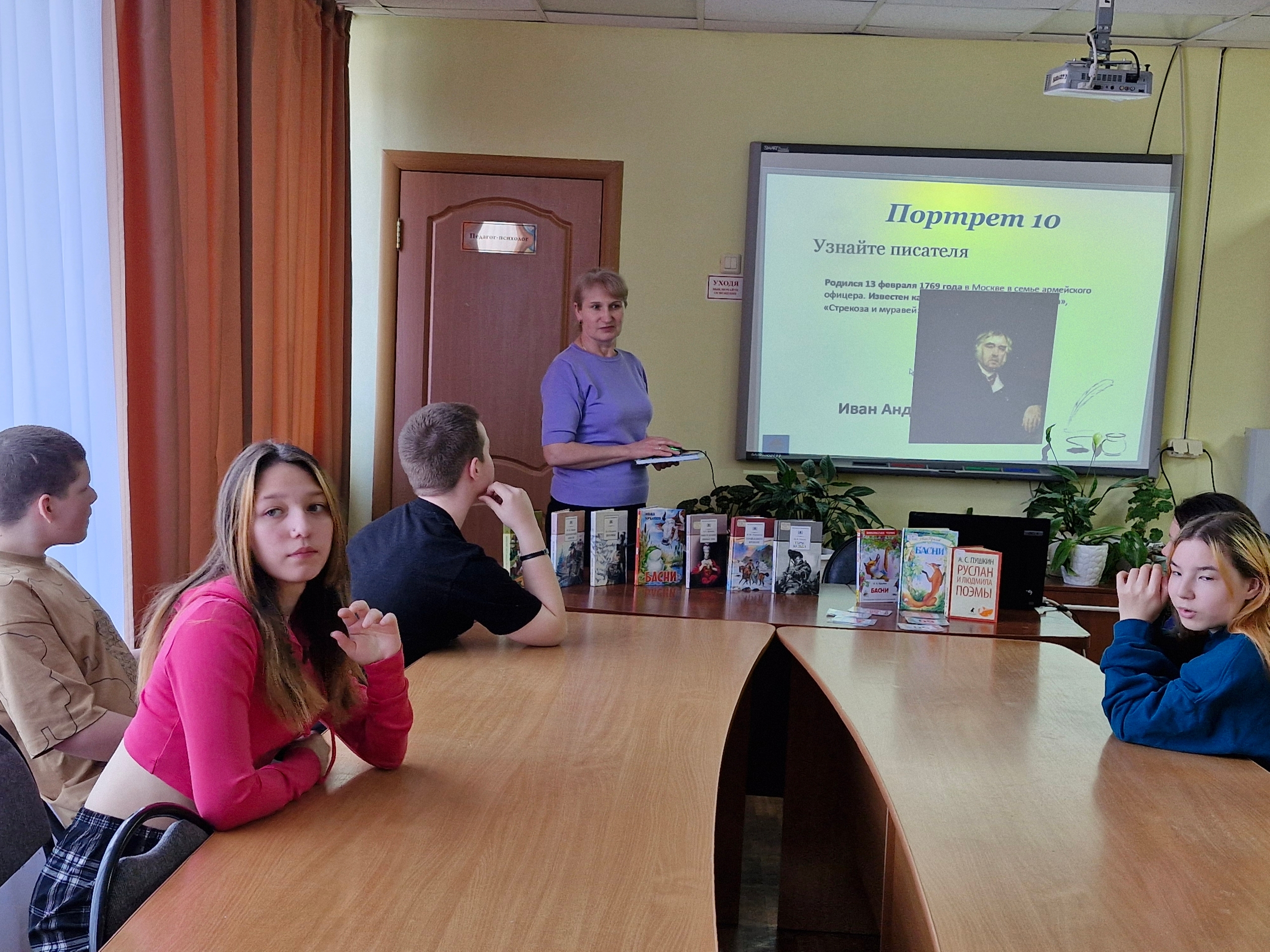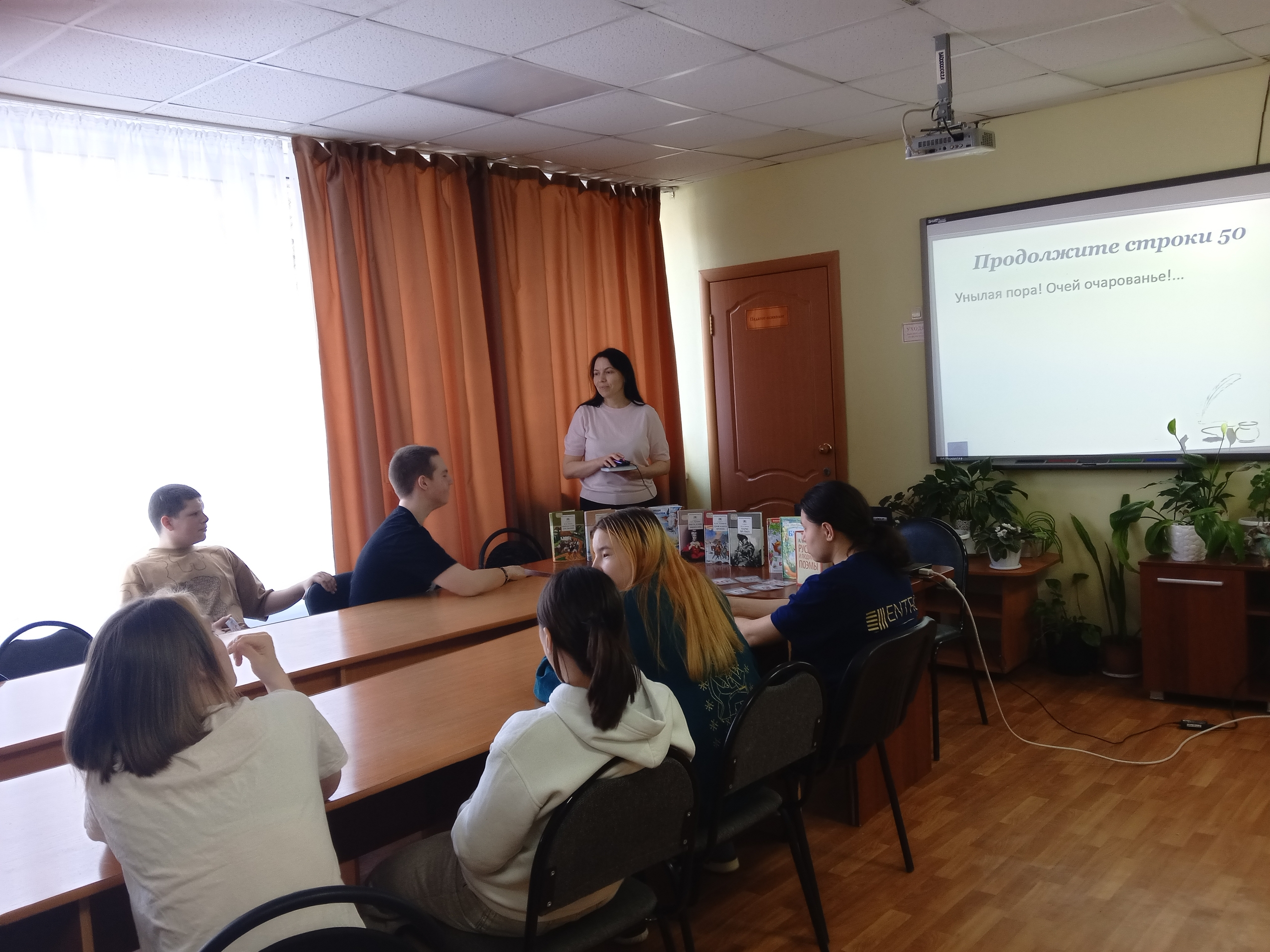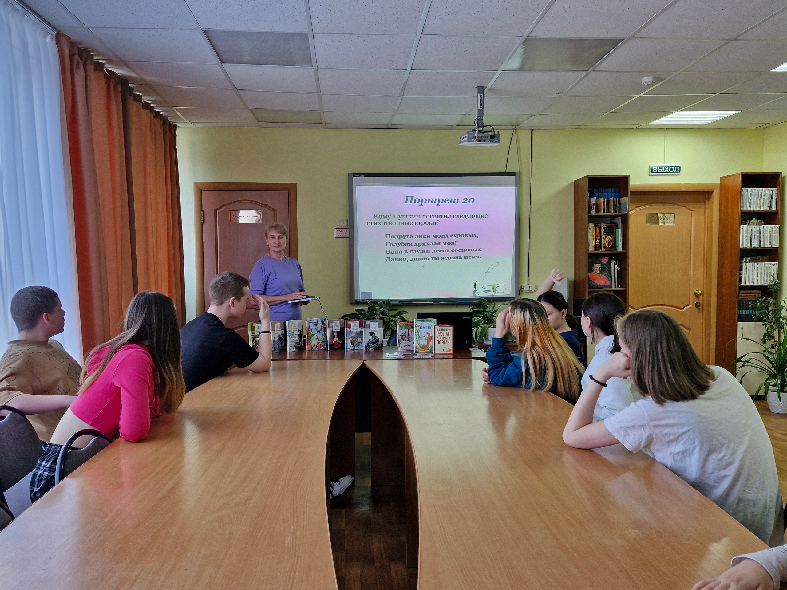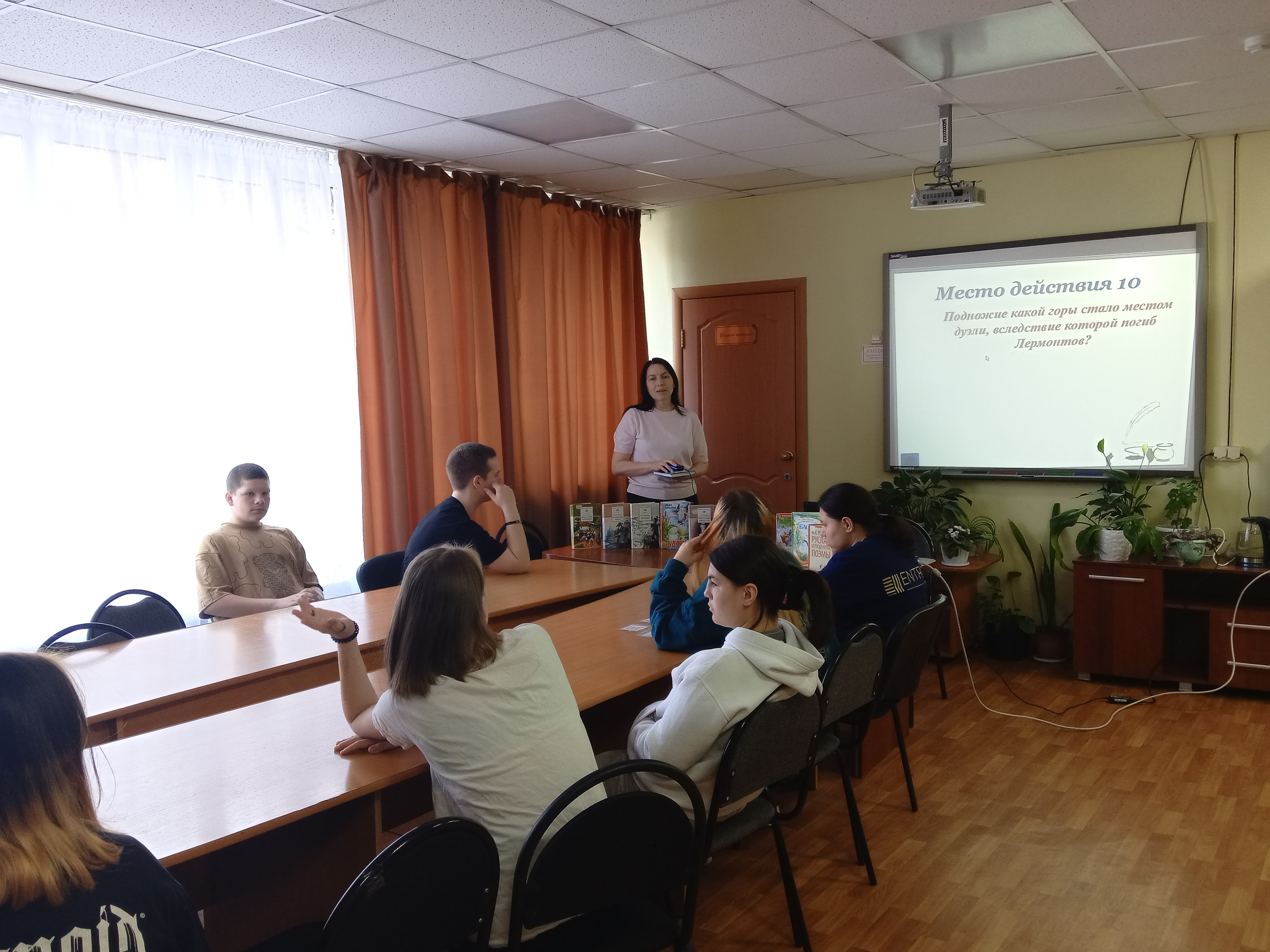 Встреча прошла в формате живой командной игры. Разделившись на команды, ребята отправились в увлекательное путешествие по страницам книг А. С. Пушкина, И. А. Крылова, Н. А. Некрасова, М. Ю. Лермонтова, Н. В. Гоголя и других авторов, составляющих золотой фонд русской литературы.